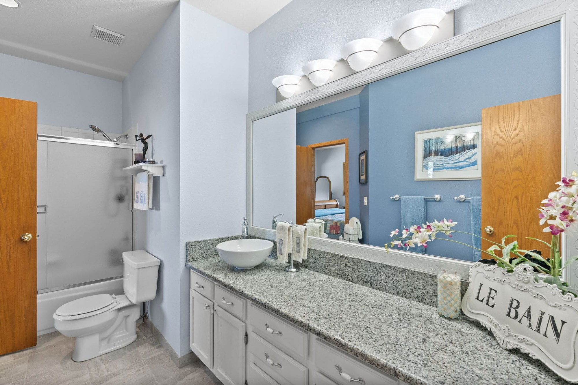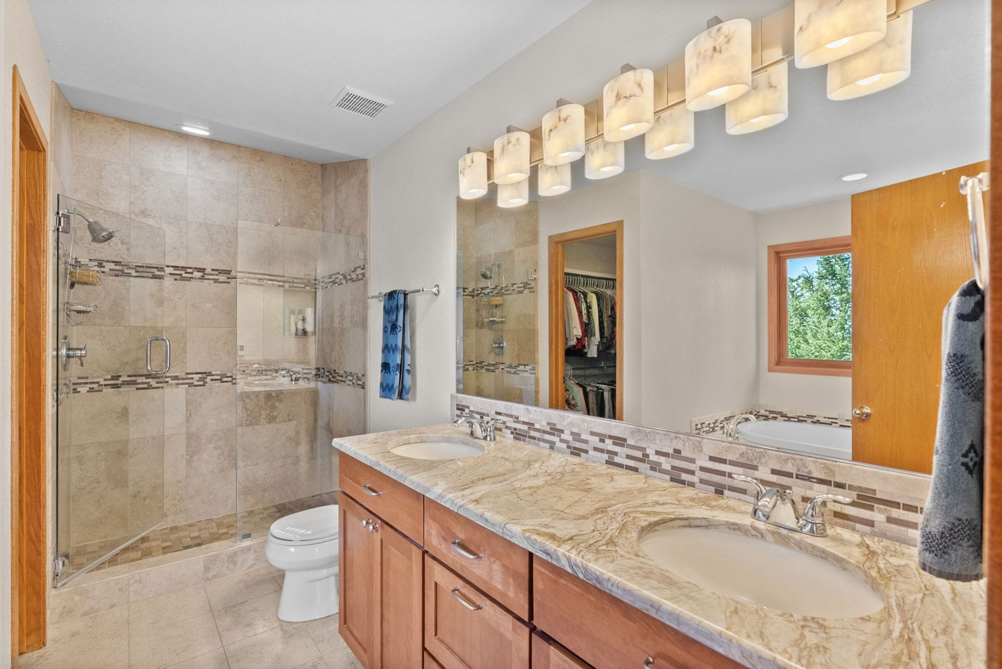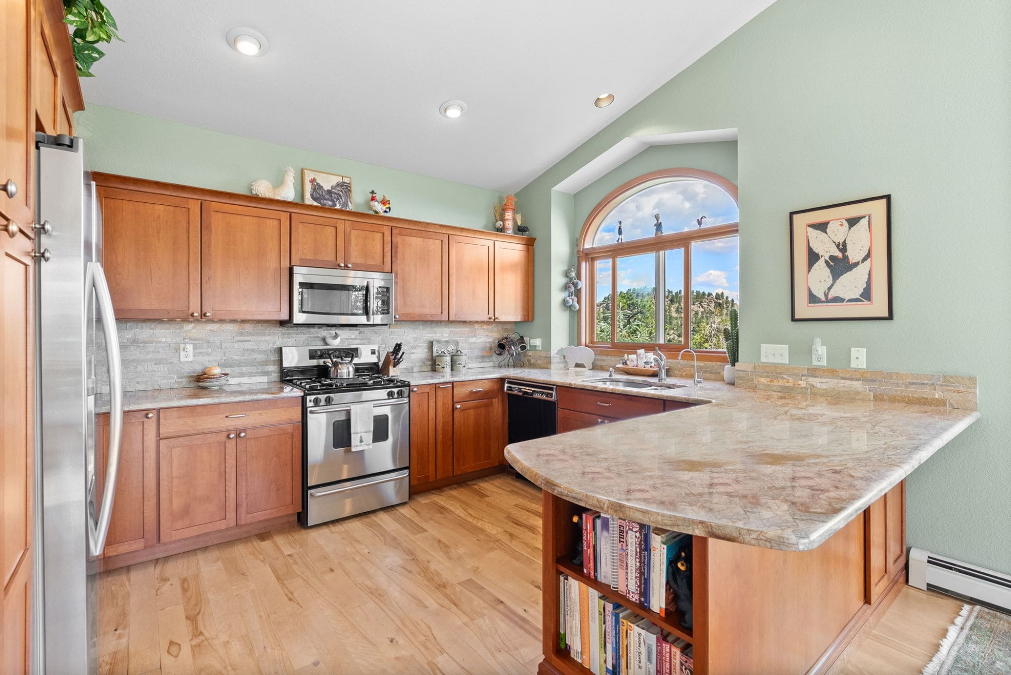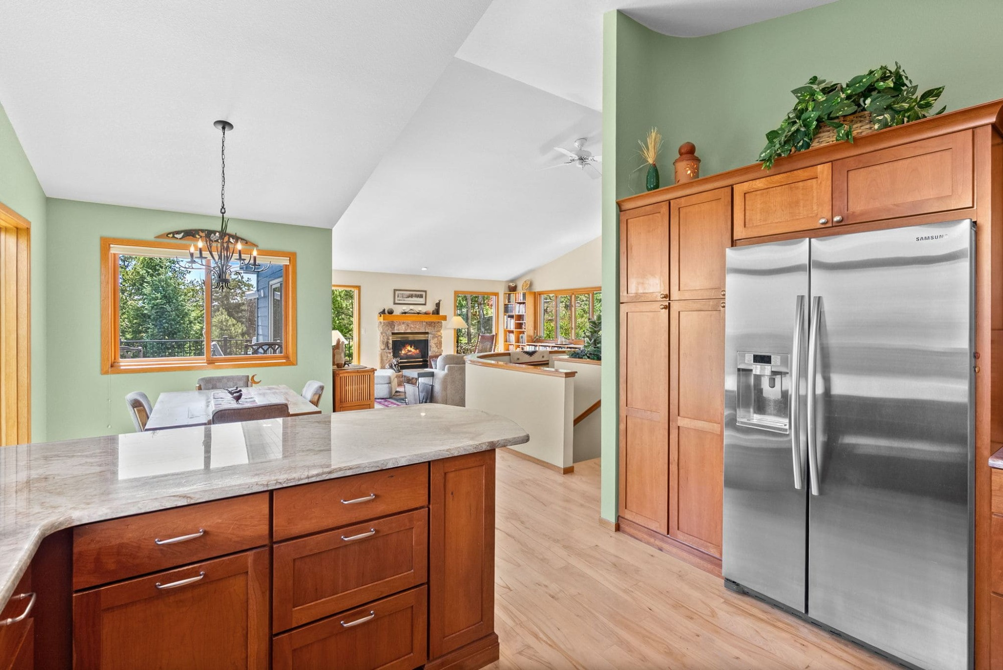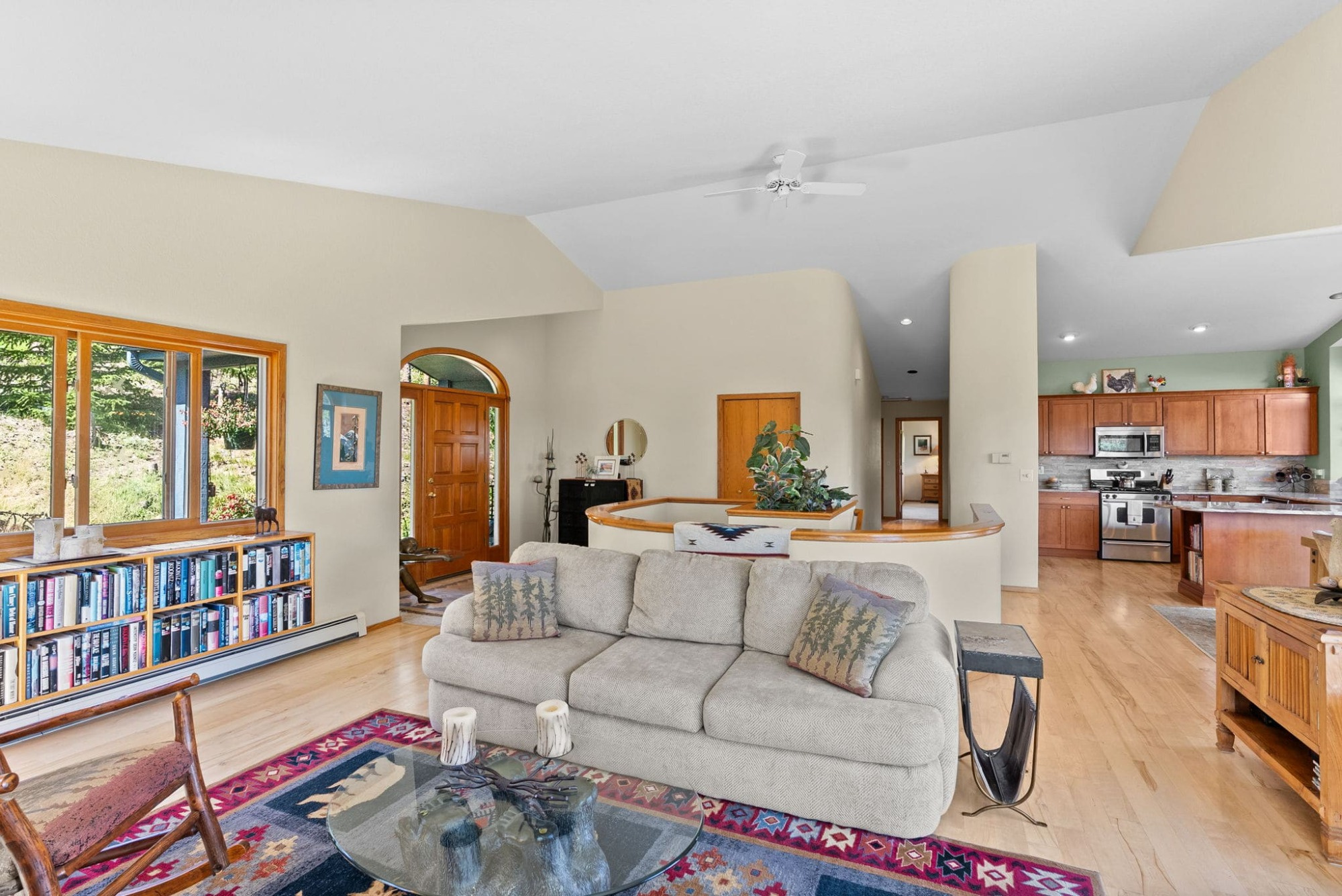 This is the kind of home that makes Evergreen living feel effortless. Elephant Butte Park sits directly behind the property, while the Alderfer Three Sisters trail system is just steps out the front door, putting miles of hiking and biking into everyday reach. Composite decks offer inviting outdoor space to relax, entertain, or enjoy the fresh mountain air. The main level living room is filled with natural light, wrapped in windows, and anchored by vaulted ceilings, a gas fireplace, and newly refinished red birch hardwood floors, creating an open and welcoming space for everyday living and gathering. Large windows throughout the home capture mountain vistas and forest views, reinforcing the connection to the outdoors. The primary suite is a true retreat, featuring expansive floor to ceiling windows, generous proportions, an en suite bath, and a private office tucked behind French doors, ideal for work from home or creative space. The office could also function as a non conforming fourth bedroom (due to septic capacity). A second bedroom on the main level provides flexibility for guests or additional living needs. The kitchen features granite counters, stainless steel appliances, and ample cabinetry, opening comfortably to the dining area for daily living or casual gatherings. The walkout lower level adds a second living room plus a spacious bedroom with en suite bath, offering privacy for guests or multigenerational living. All three bathrooms have been updated with granite counters, and the exterior was painted in summer 2024, reflecting thoughtful upkeep. Located approximately 3 miles from downtown Evergreen amenities and near top rated schools, this home brings together trail access, views, and everyday convenience in one inviting setting.